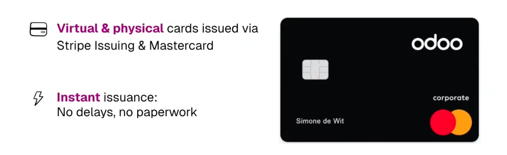 Mit Odoo 19 führt Odoo eine integrierte Debitkarte für Mitarbeiter ein – die Odoo Expense Card.